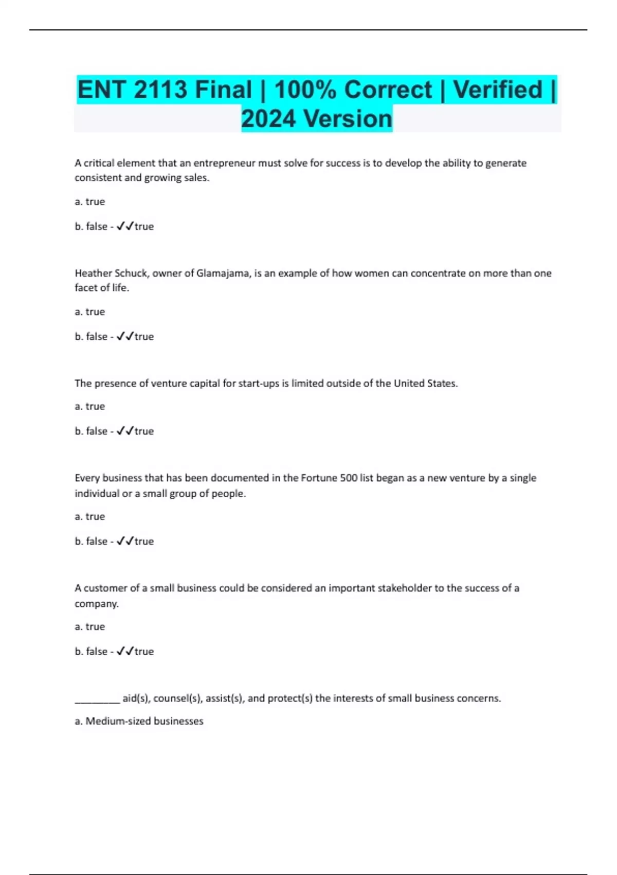 ENT 2113 Final | 100% Correct | Verified | 2024 Version