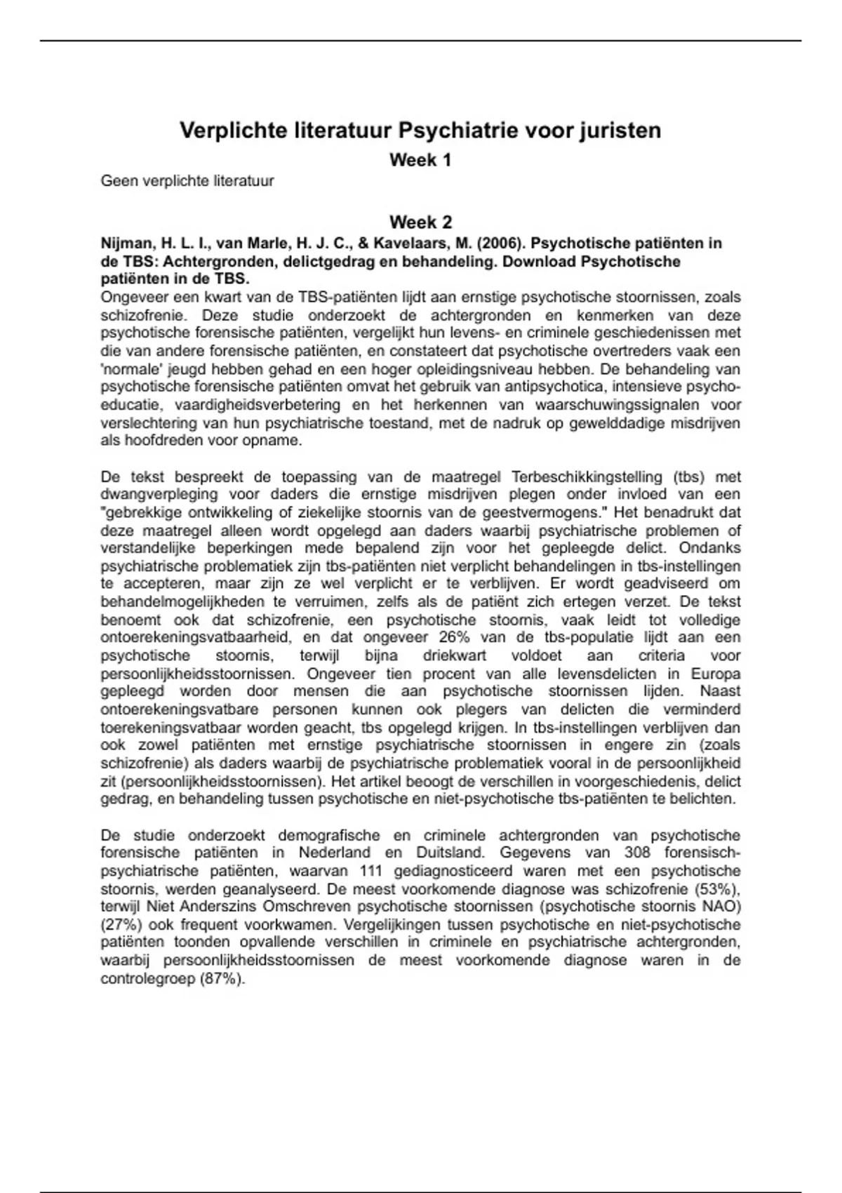 Pagina 1 t/m 26: De psychiatrie in het Nederlands recht (Hoofdstuk 1 en 2)