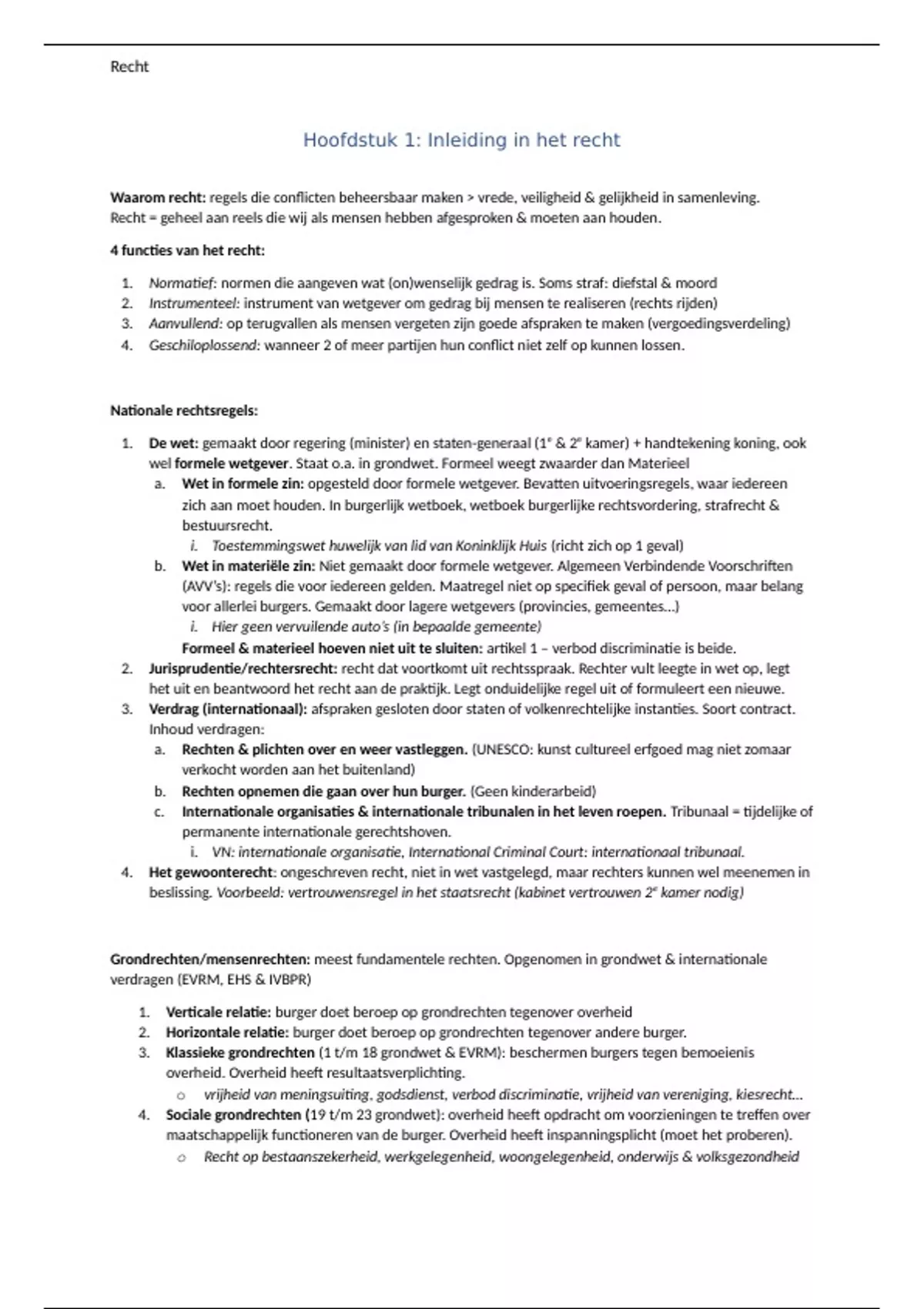 1. De wet: gemaakt door regering (minister) en staten-generaal (1 e & 2e kamer) + handtekening koning, ook
