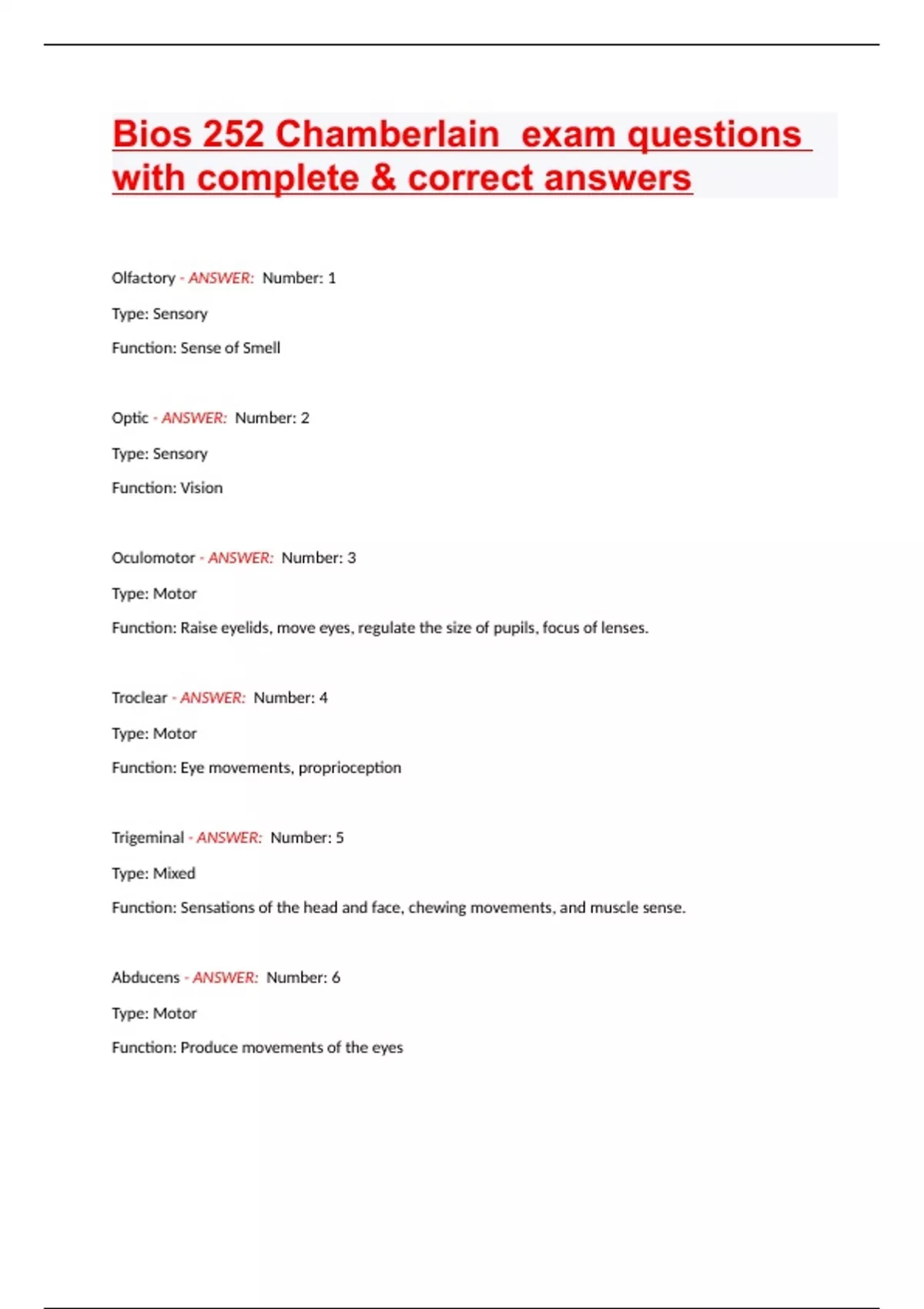 Bios 252 Chamberlain exam questions with complete & correct answers