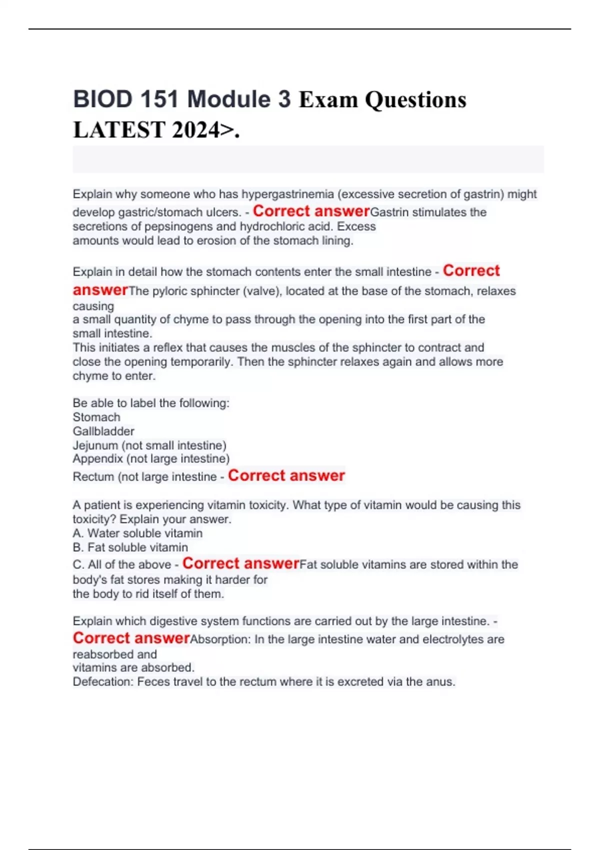Portage Learning BIOD 151 Module 3 Exam Questions LATEST 2024
