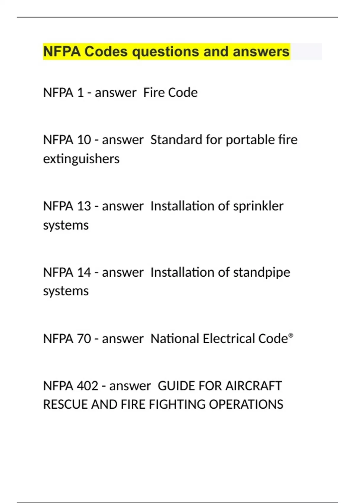 NFPA Codes questions and answers