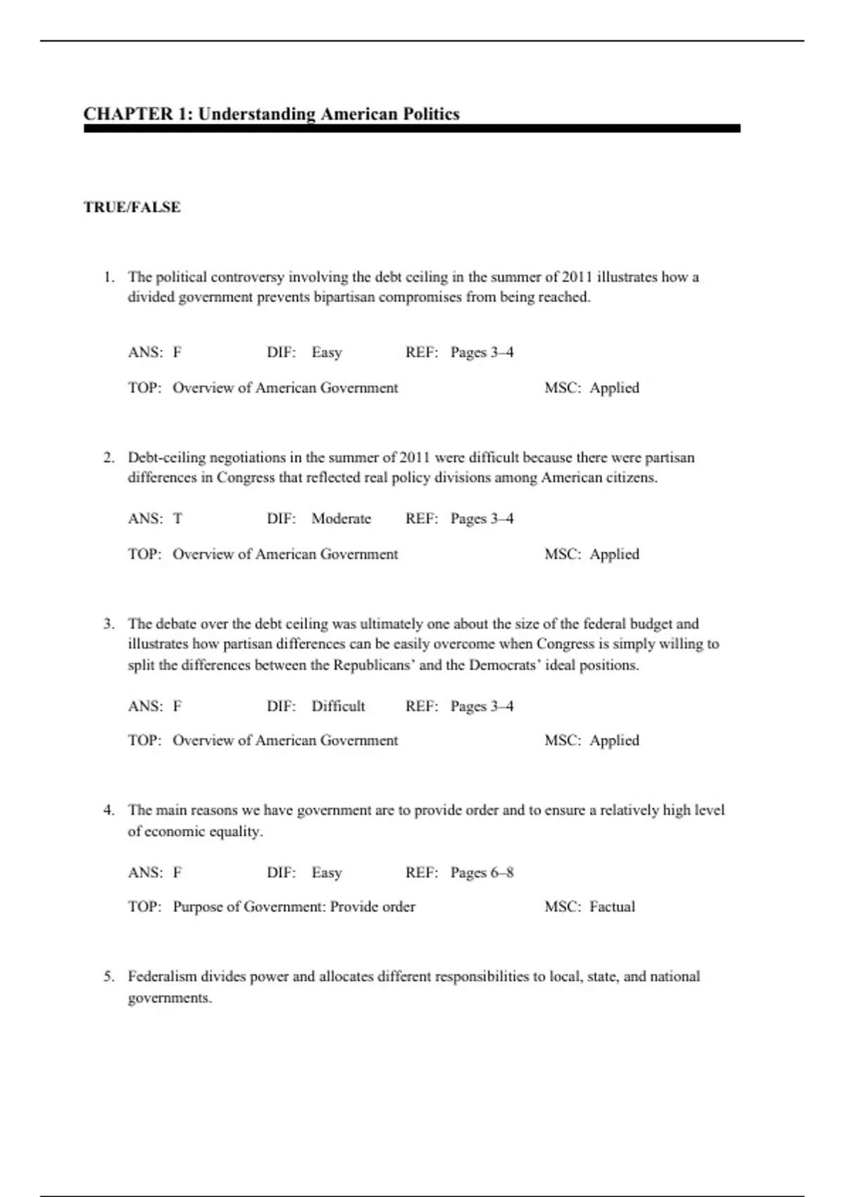 TOP: Overview of American Government MSC: Factual