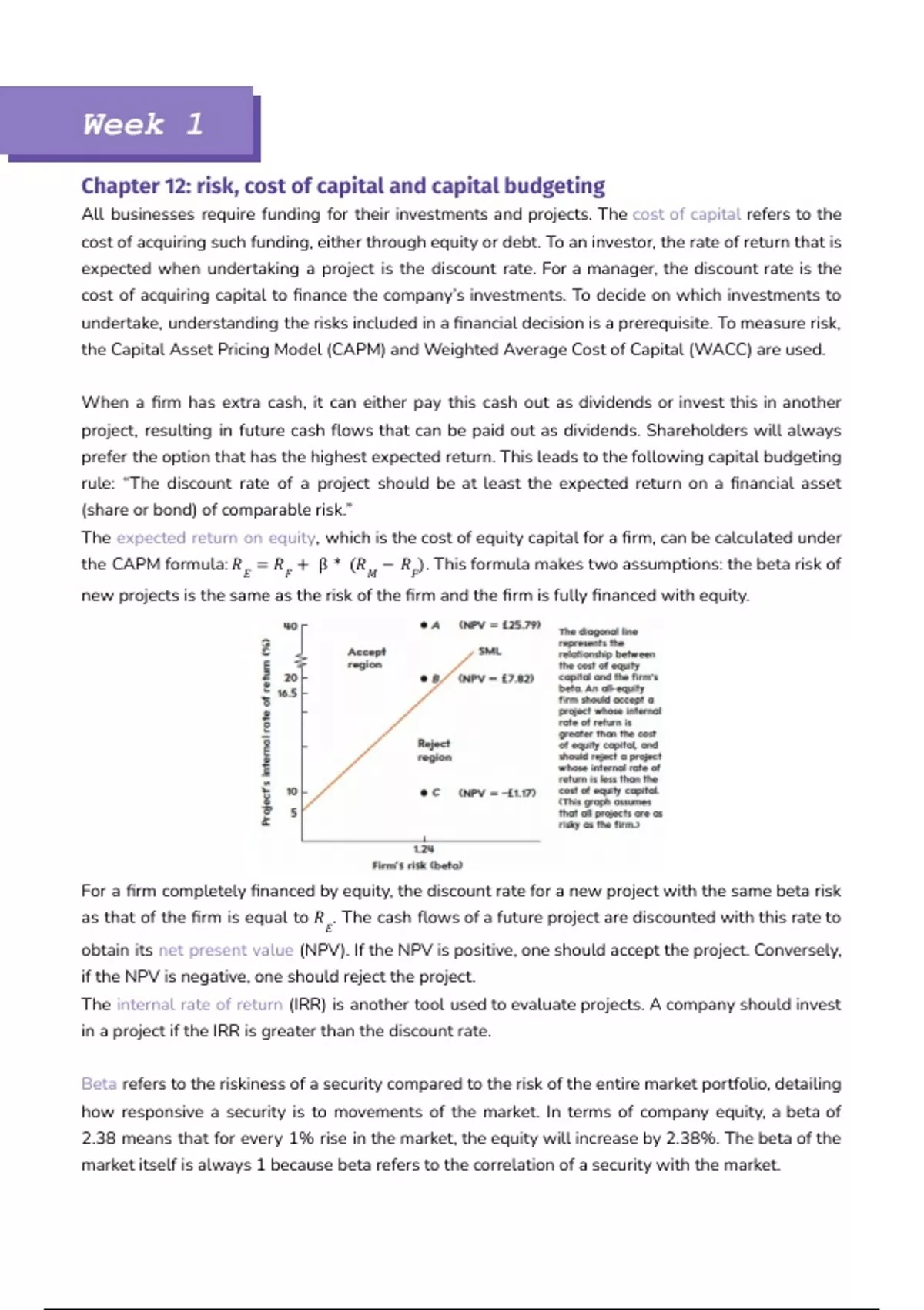 reflects project risk rather than firm risk. This is important as companies often speak of a corporate