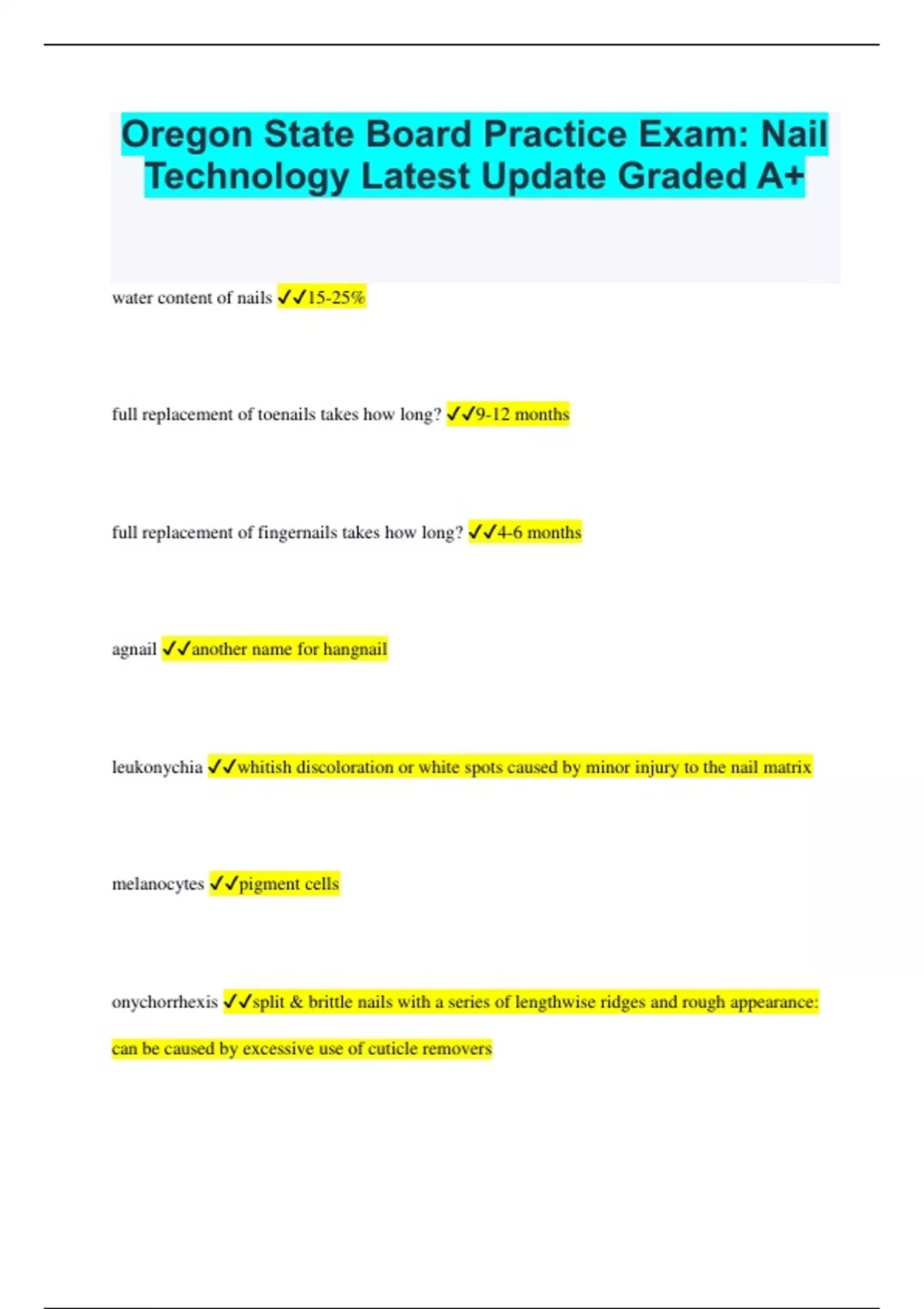 Oregon State Board Practice Exam: Nail Technology Latest Update Graded A+