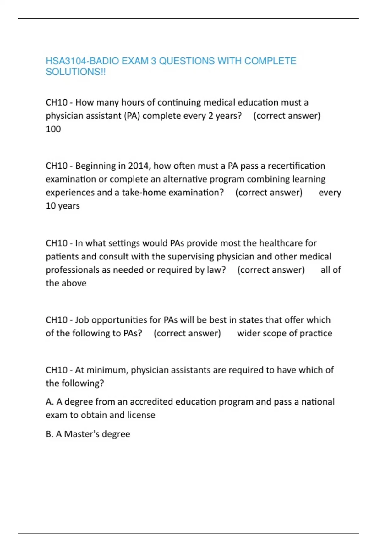 HSA3104-BADIO EXAM 3 QUESTIONS WITH COMPLETE SOLUTIONS!!