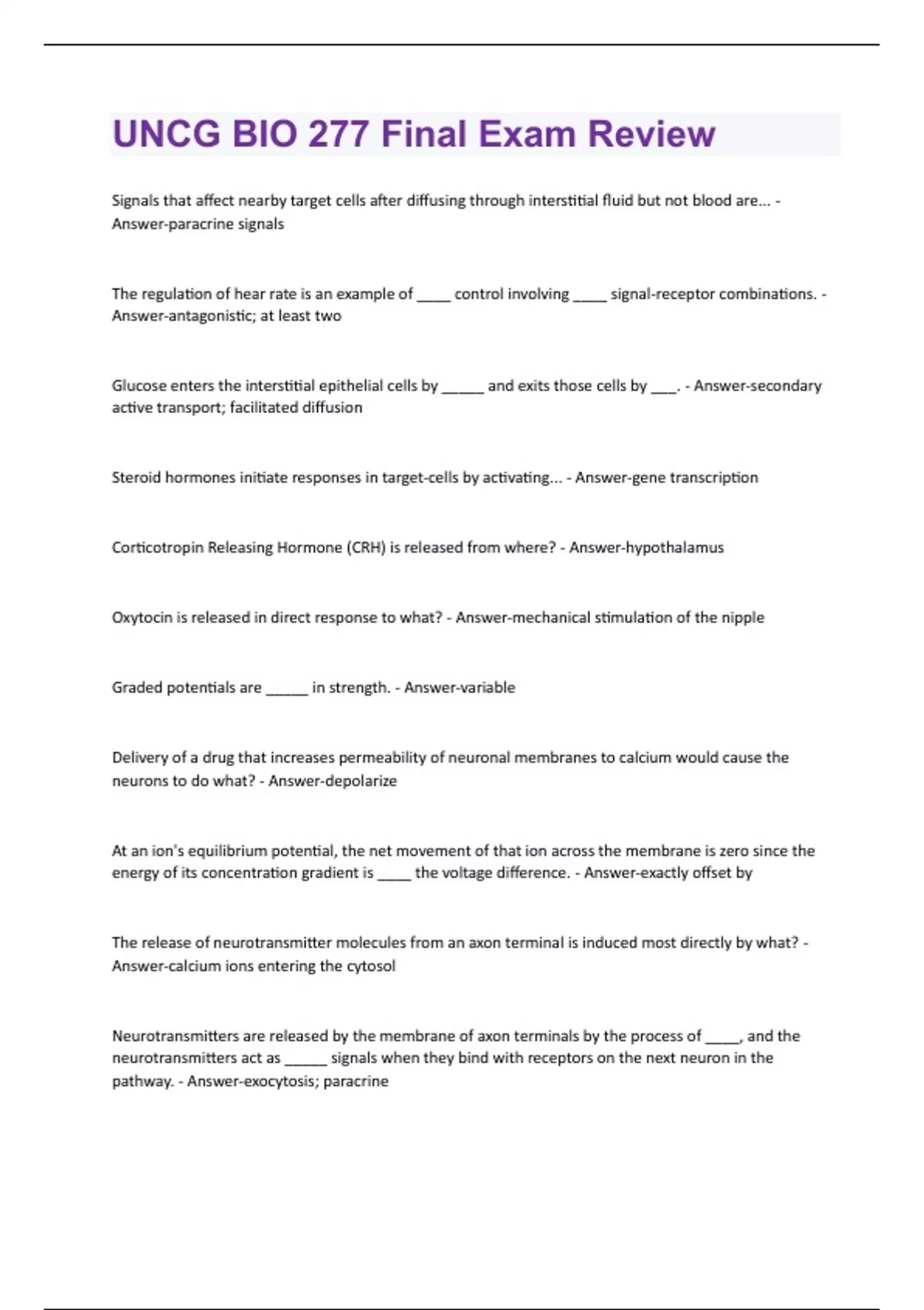 UNCG BIO 277 Final Exam Review Questions and Answers(A+ Solution guide)