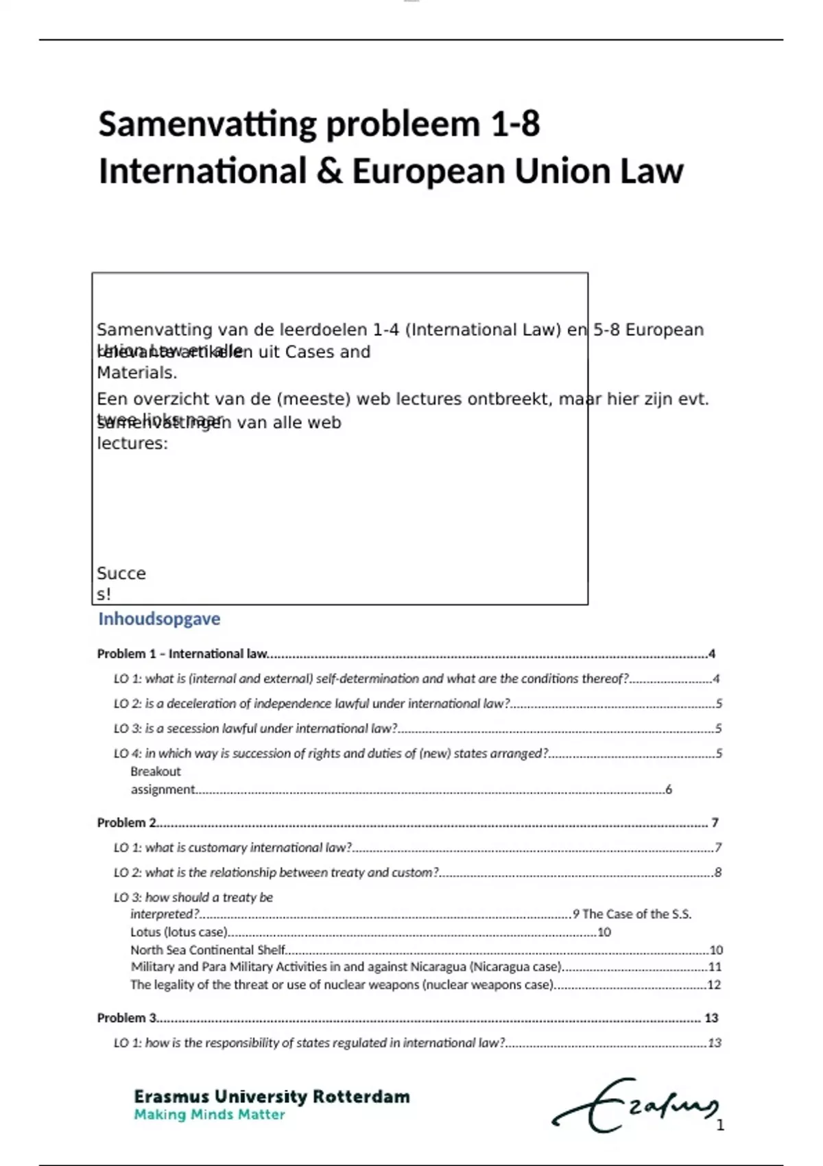 Samenvatting van de leerdoelen 1-4 (International Law) en 5-8 European