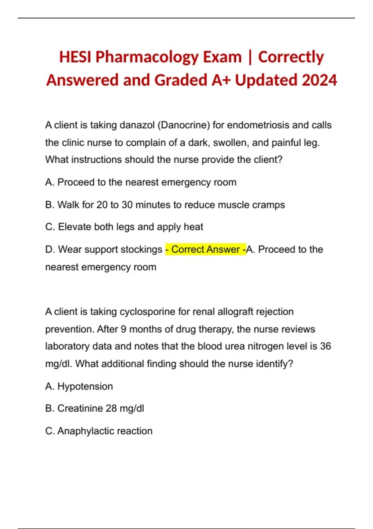 HESI RN Pharmacology Exam | Correctly Answered and Graded A+ Updated 2024 HESI RN Pharmacology Exam | Correctly Answered and Graded A+ Updated 2024 HESI RN Pharmacology Exam | Correctly Answered and Graded A+ Updated 2024