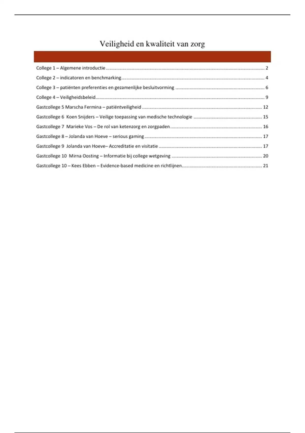 Gastcollege 5 Marscha Fermina – patiëntveiligheid ............................................................................................. 12