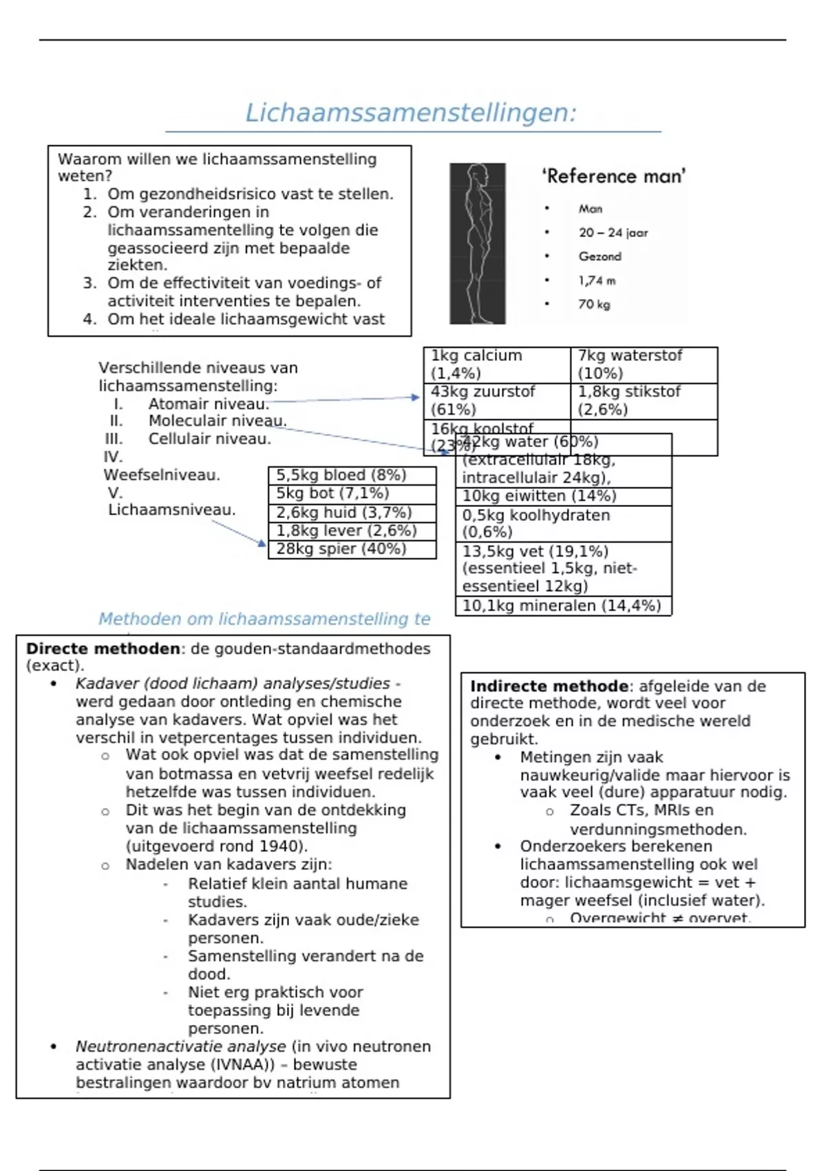 o Nadelen van kadavers zijn: lichaamssamenstelling ook wel