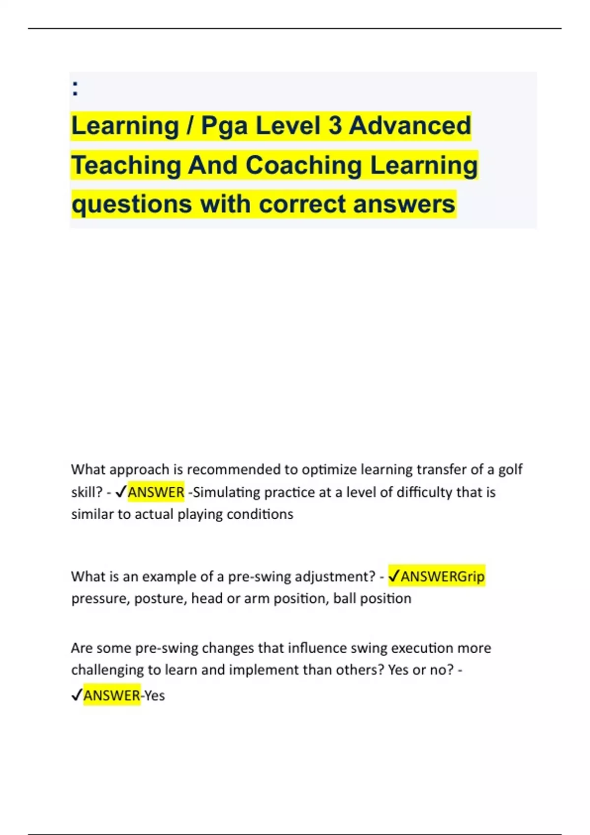 Pga Level 3 Advanced Teaching And Coaching Learning
