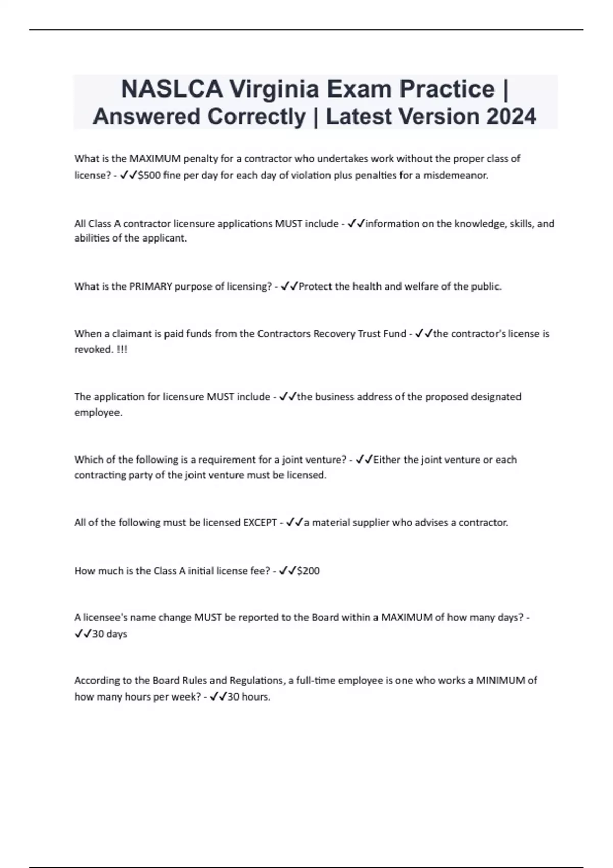 NASLCA Virginia Exam Practice | Answered Correctly | Latest Version 2024