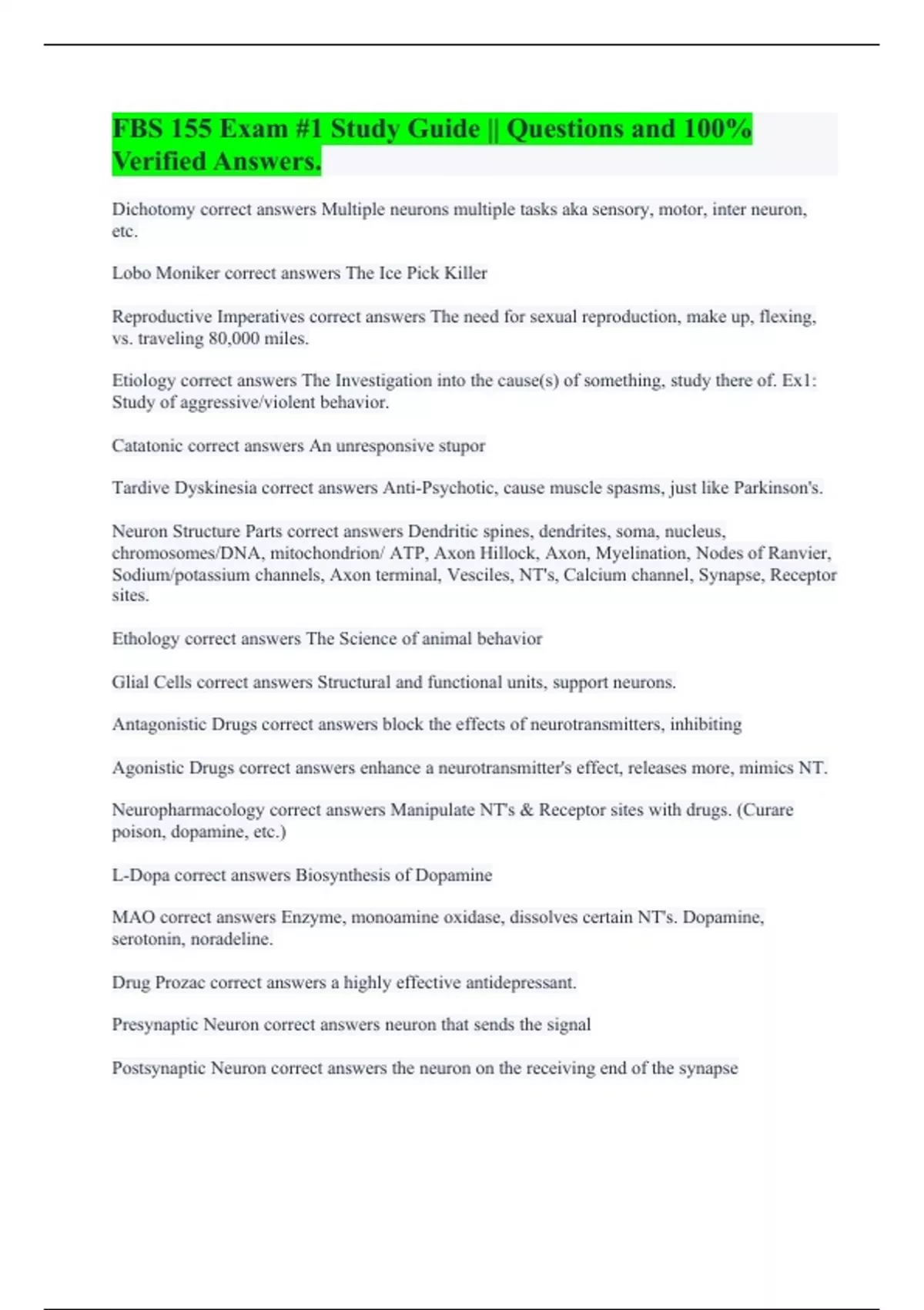 FBS 155 Exam #1 Study Guide || Questions and 100% Verified Answers.