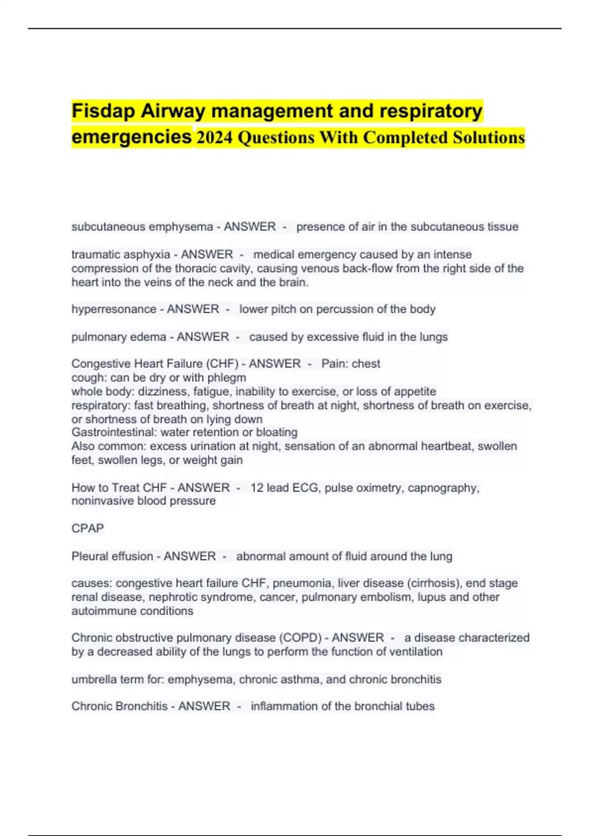 Fisdap Airway management and respiratory emergencies 2024 Questions With Completed