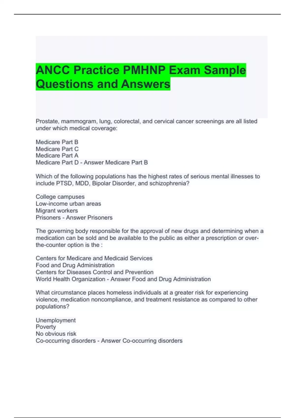 ANCC Practice PMHNP Exam Sample Questions and Answers