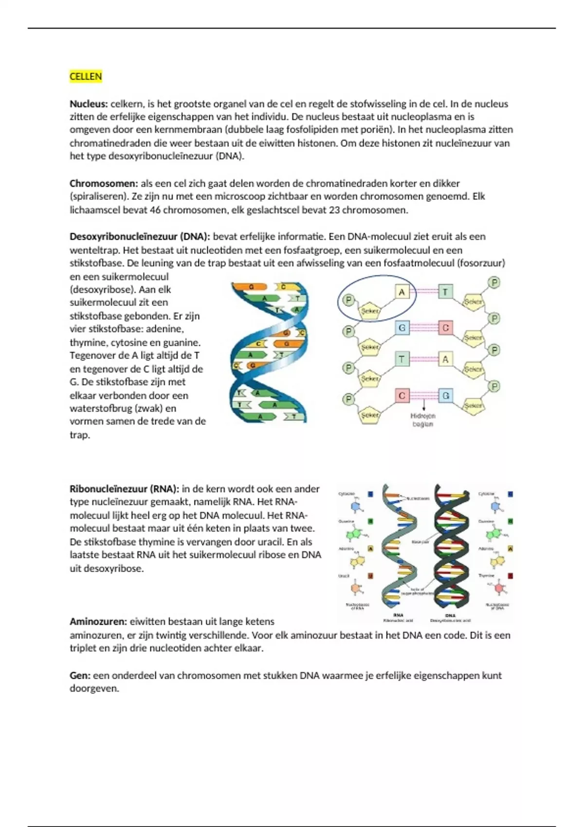 Nucleus: celkern, is het grootste organel van de cel en regelt de stofwisseling in de cel. In de nucleus