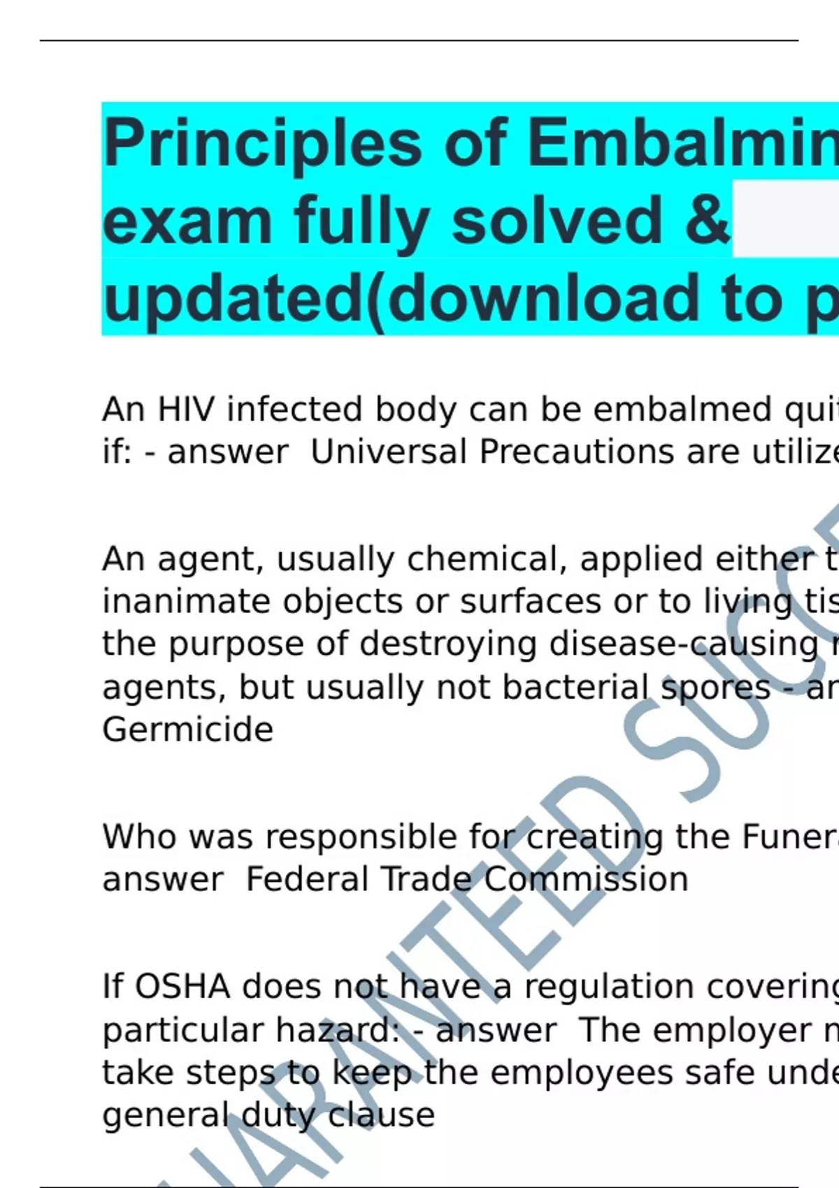 Principles of Embalming 1 exam fully solved & updated(download to pass)