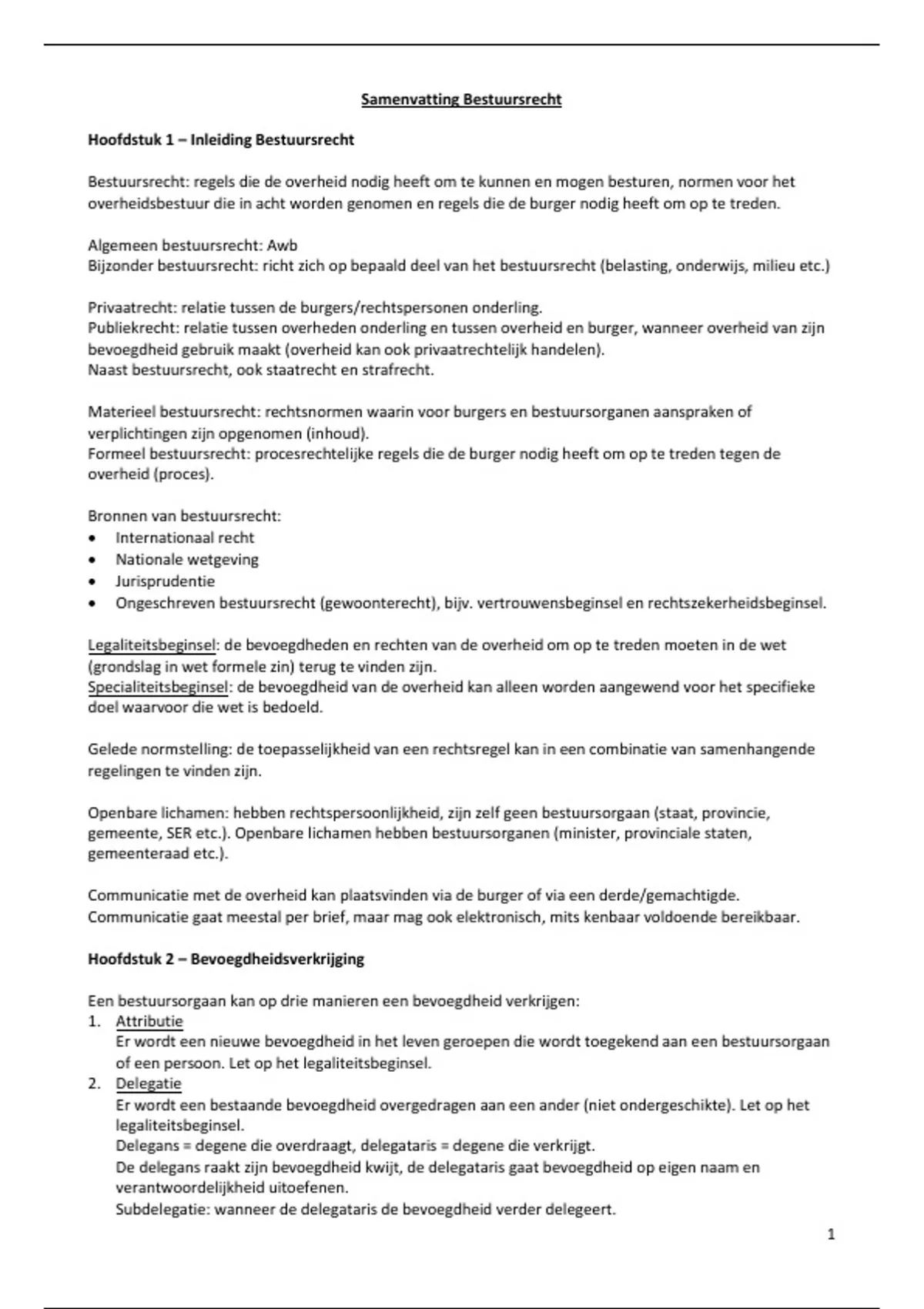 Hoofdstuk 1 – Inleiding Bestuursrecht
