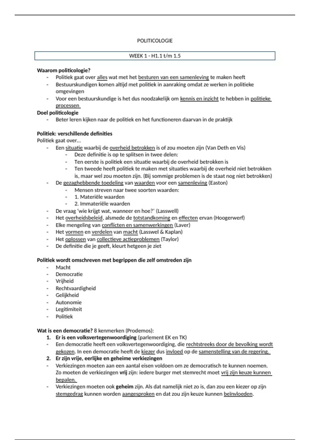 Samenvatting Politicologie, Bestuurskunde jaar 1 aan de HvA. Samenvatting bevat alles van de hoorcolleges, de besproken onderwerpen tijdens hoorcollege zijn aangevuld met informatie vanuit het boek 'politiek en politicologie'.