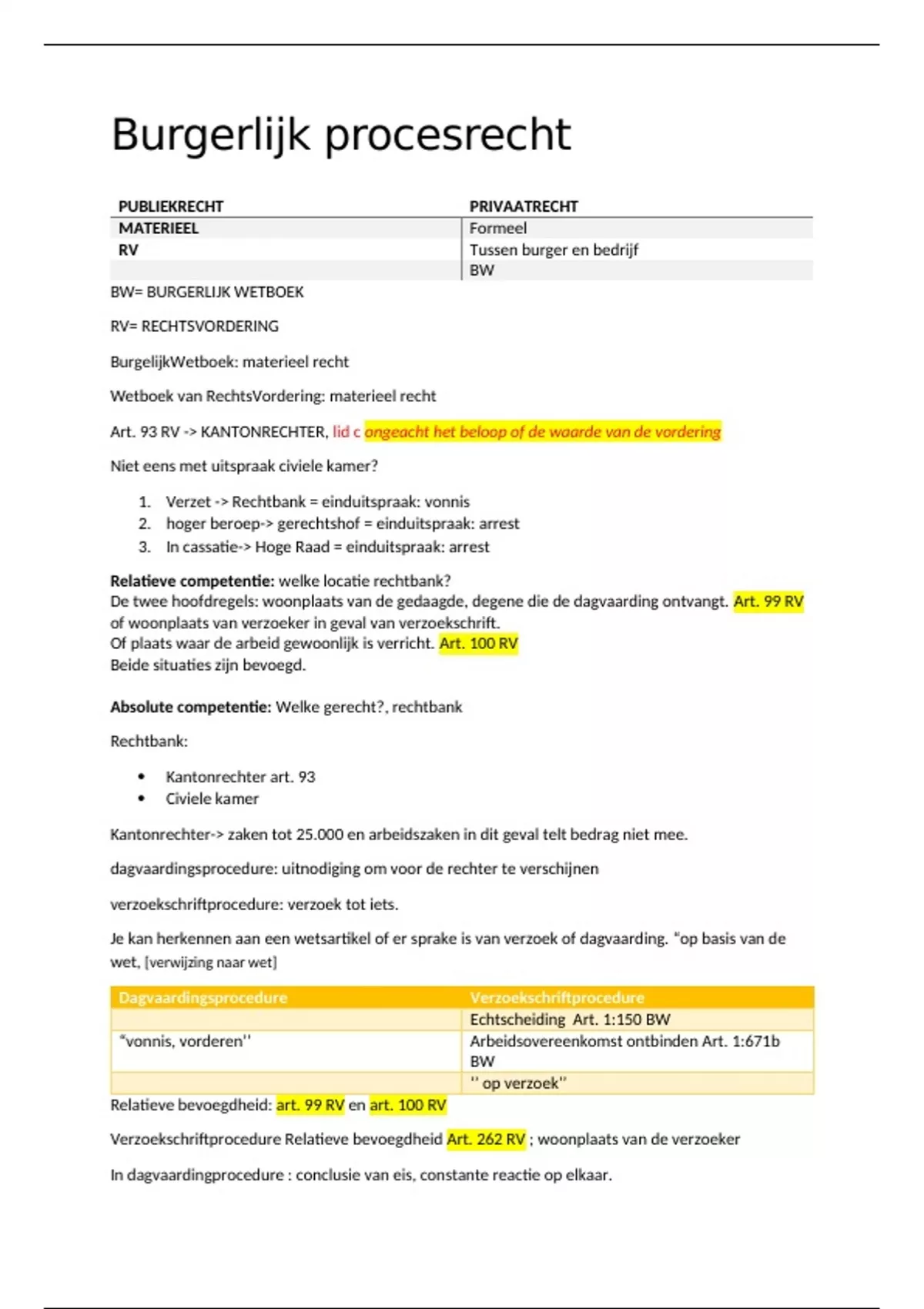 Een samenvatting over het proces tijdens een burgerlijke rechtszitting. De samenvatting bevat alle belangrijke wetsartikelen. Tevens bevat het ook de uitgewerkte samenvatting.