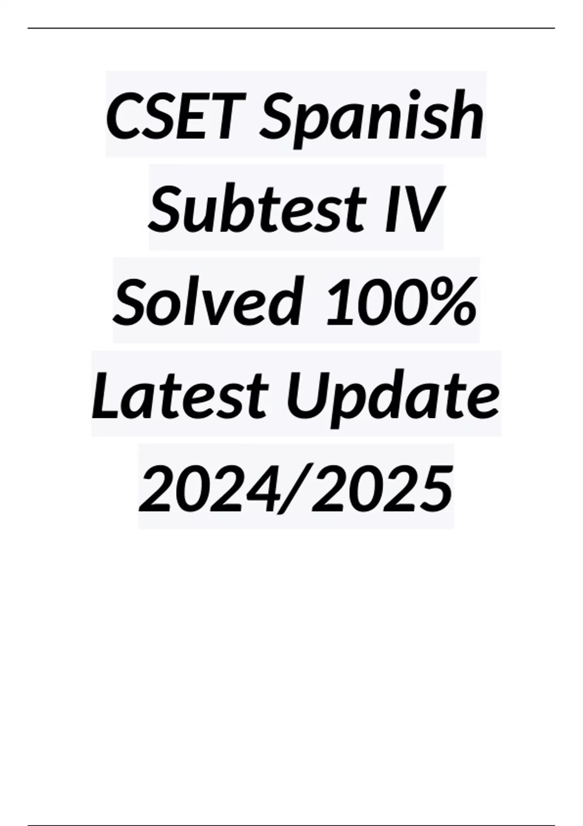 CSET Spanish Subtest IV Solved 100% Latest Update 2024/2025