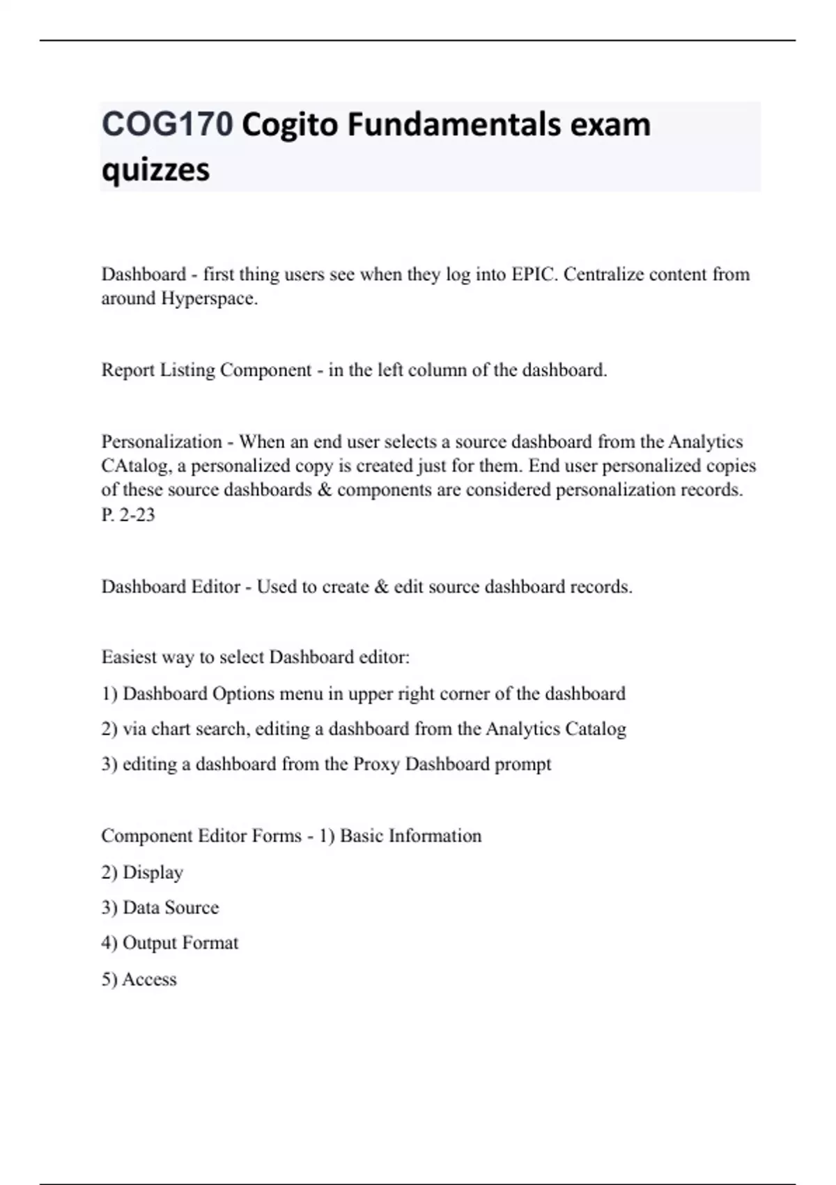 COG170 Cogito Fundamentals exam quizzes