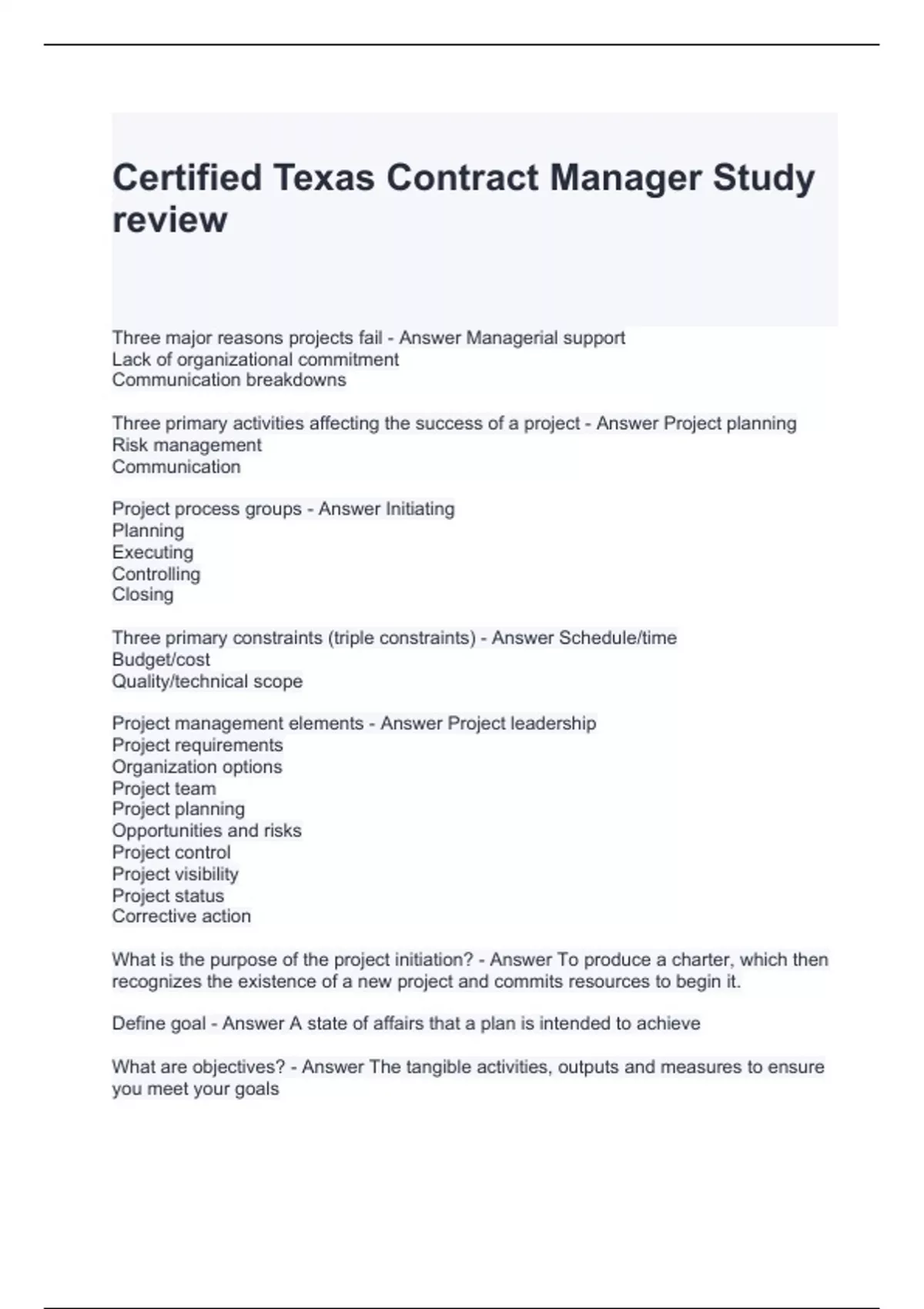 Certified Texas Contract Manager Study review 2024 Questions and Answers
