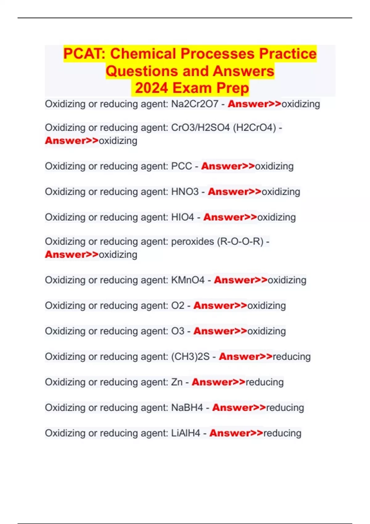PCAT: Chemical Processes Practice Questions and Answers 2024 Exam Prep