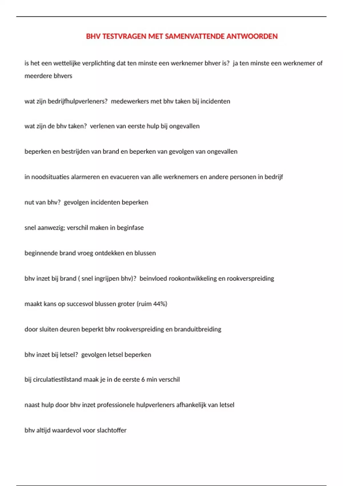 eigen verantwoordelijkheid 🗸 volg bhv cursus, herhaling en oefeningen