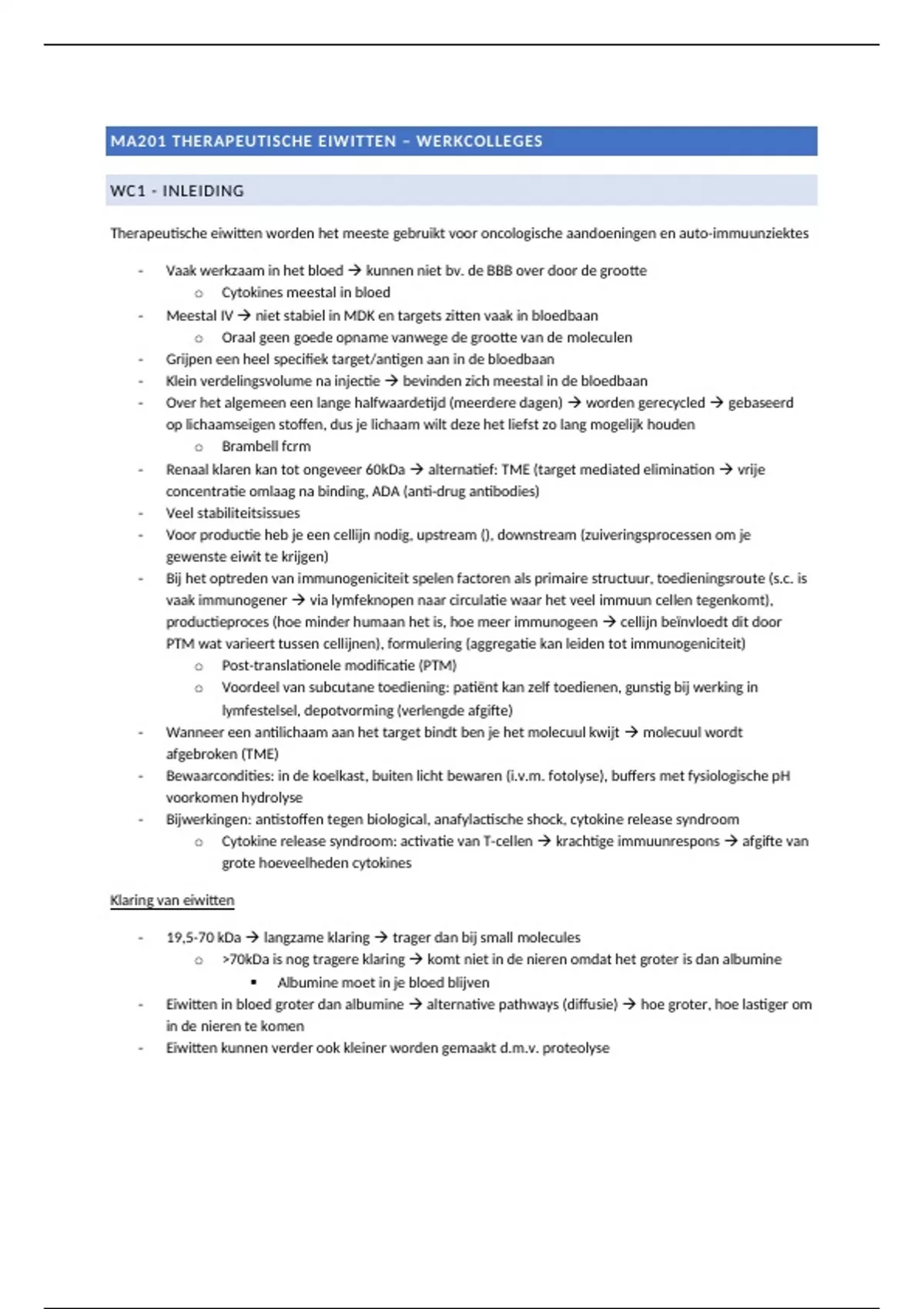 MA201 THERAPEUTISCHE EIWITTEN – WERKCOLLEGES