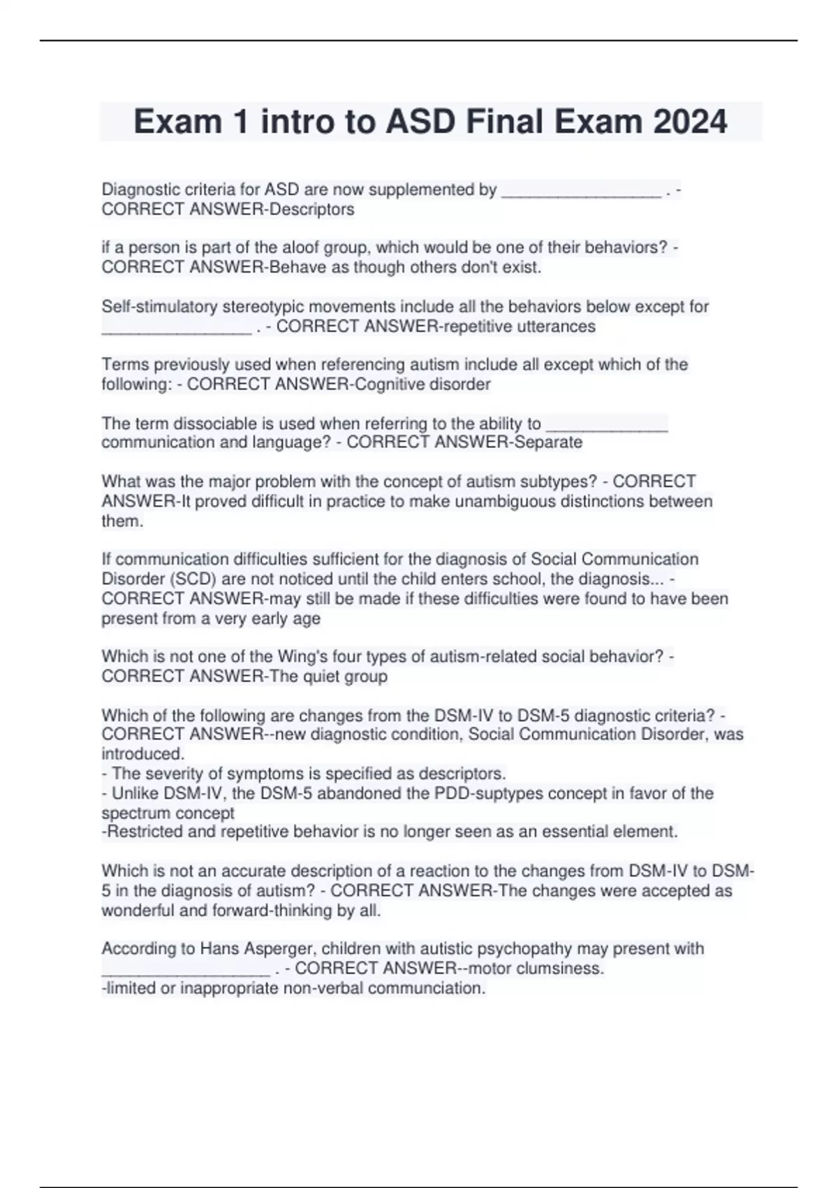 5 in the diagnosis of autism? - CORRECT ANSWER-The changes were accepted as