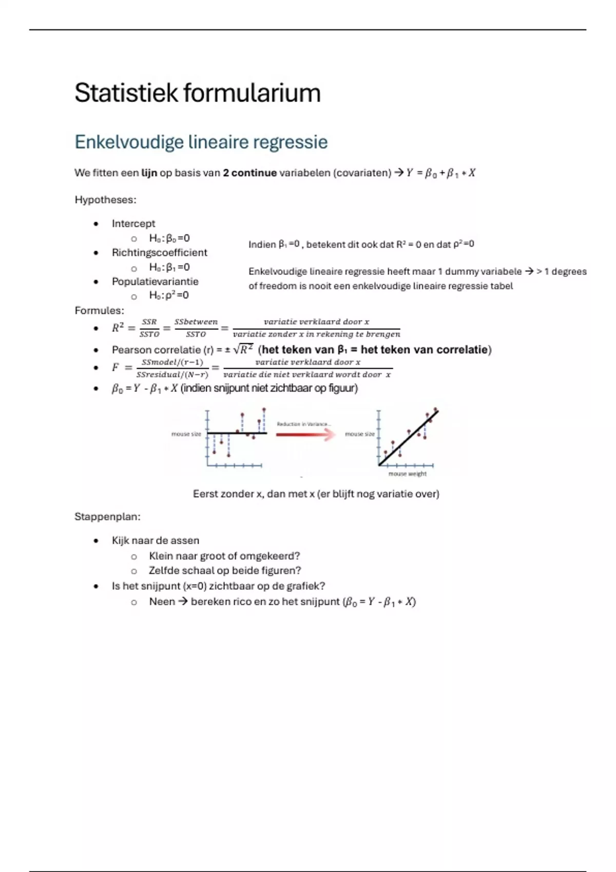 • 𝛽0 = 𝑌 - 𝛽1 ∗ 𝑋 (indien snijpunt niet zichtbaar op figuur)