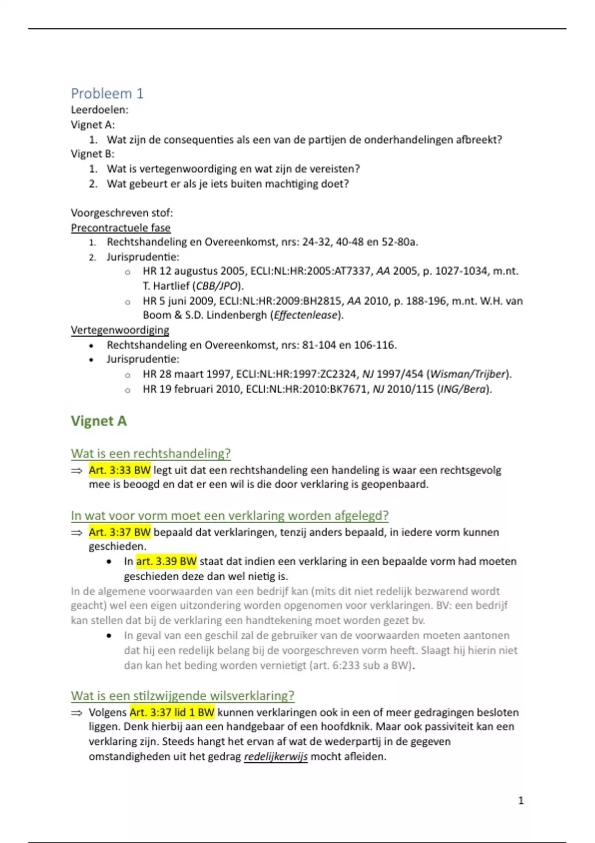 1. Rechtshandeling en Overeenkomst, nrs: 24-32, 40-48 en 52-80a.
