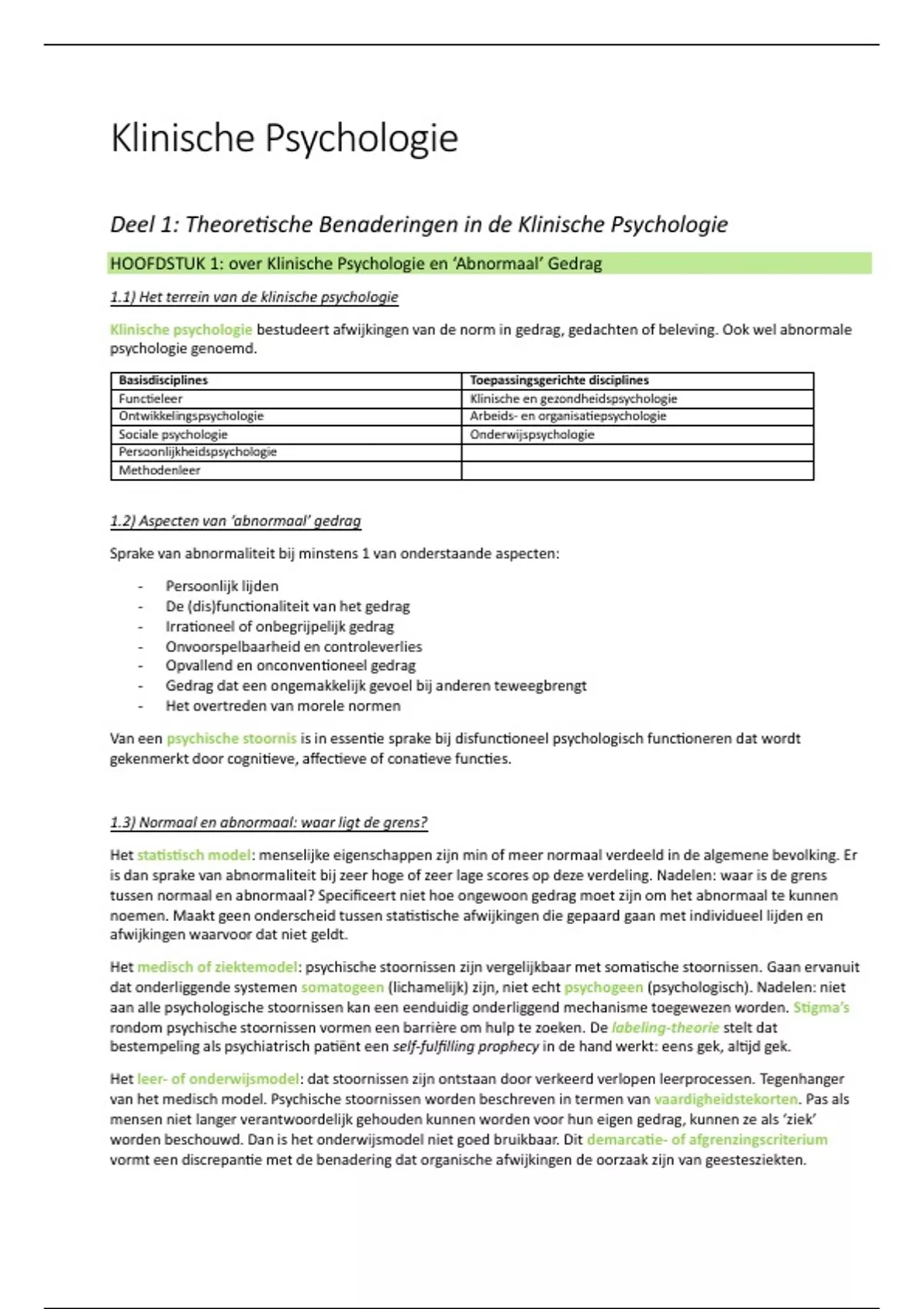 Deel 1: Theoretische Benaderingen in de Klinische Psychologie