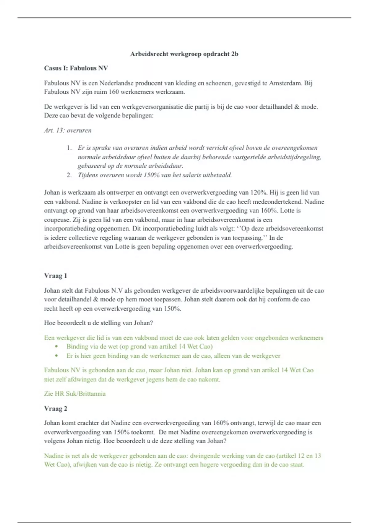 Arbeidsrecht werkgroep opdracht 2b