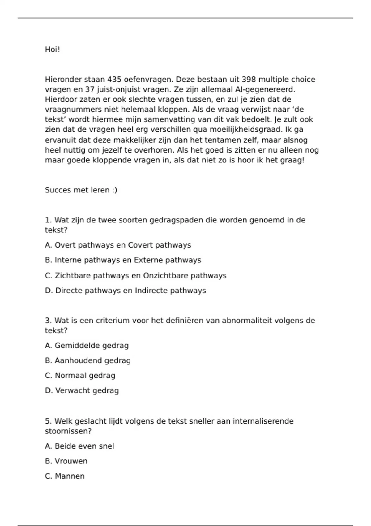 vragen en 37 juist-onjuist vragen. Ze zijn allemaal AI-gegenereerd.