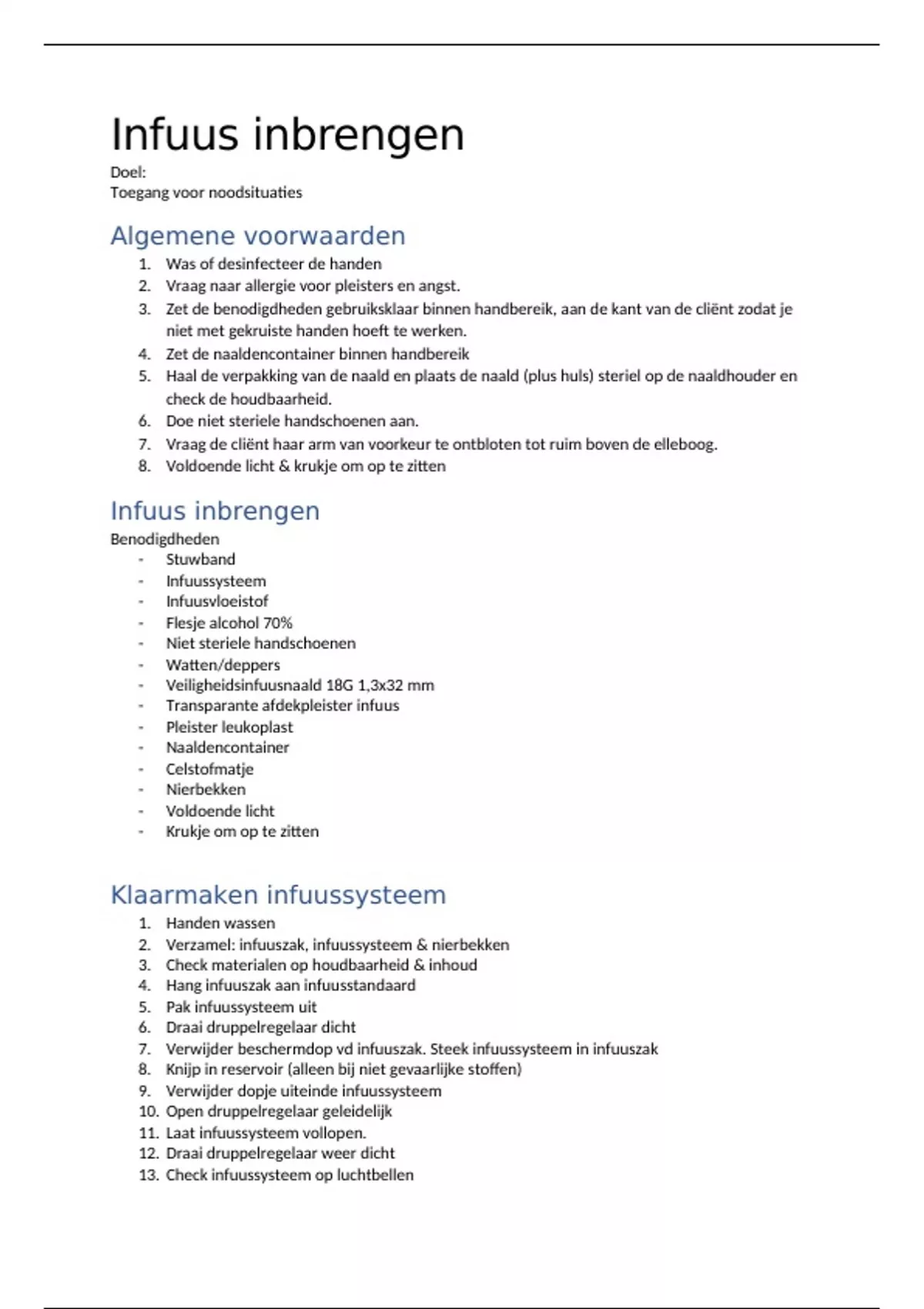 13. Check infuussysteem op luchtbellen