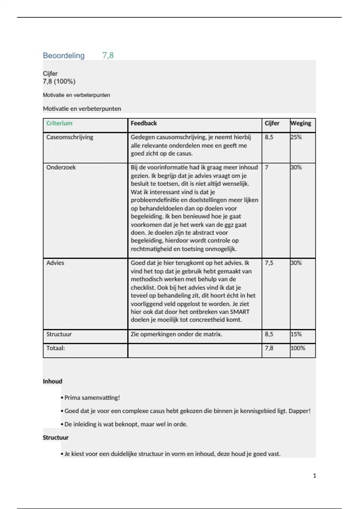 Caseomschrijving Gedegen casusomschrijving, je neemt hierbij 8,5 25%