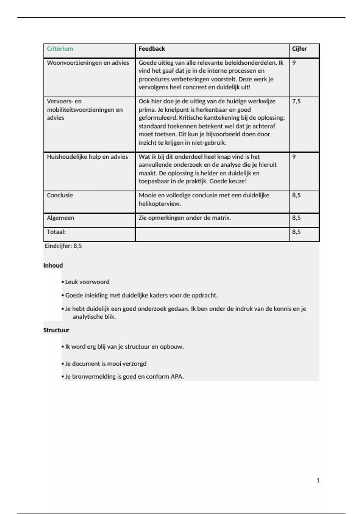 Eindcijfer: 8,5