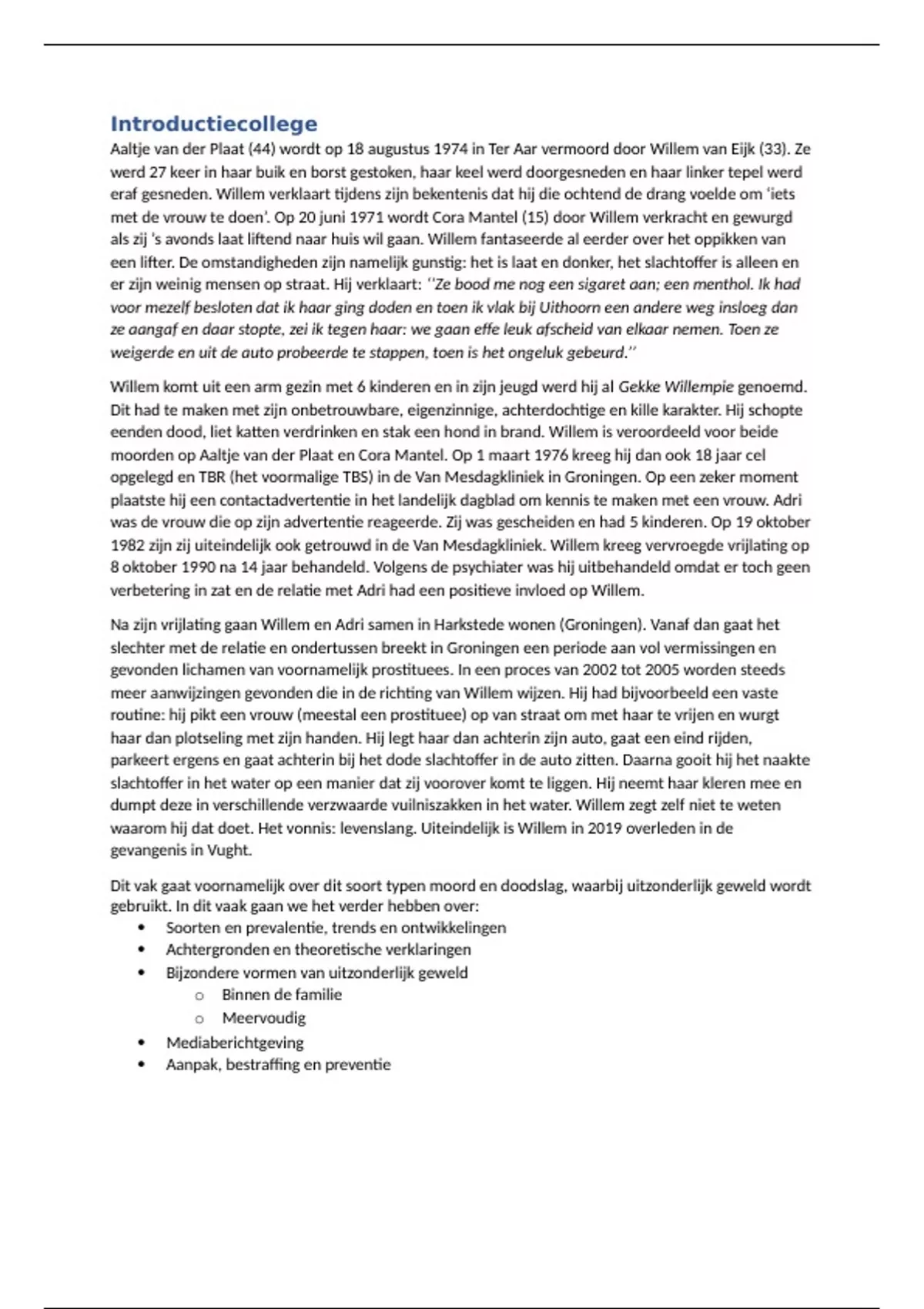 Dit vak gaat voornamelijk over dit soort typen moord en doodslag, waarbij uitzonderlijk geweld wordt