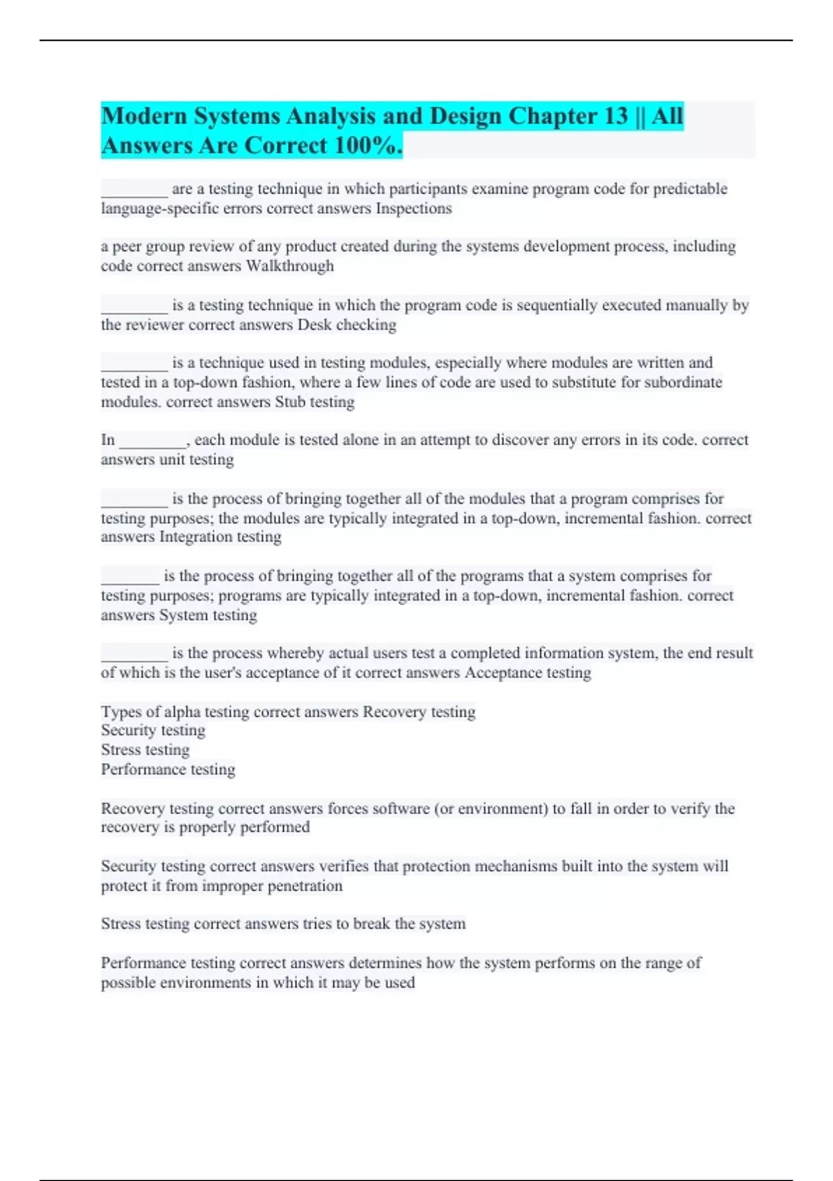 Modern Systems Analysis and Design Chapter 13 || All Answers Are Correct 100%.