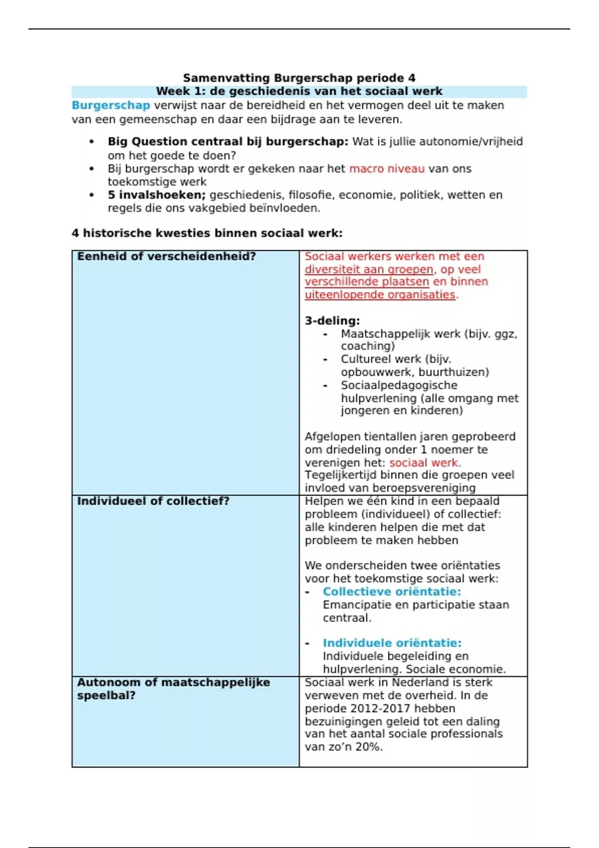 Samenvatting burgerschap - Periode 4 leerjaar 1, Fontys social work