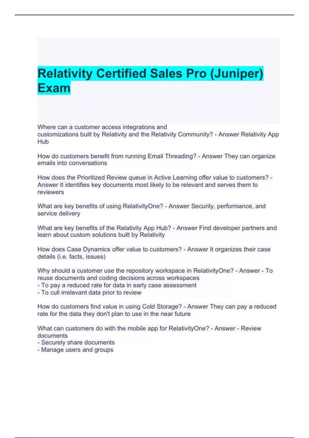 Relativity Certified Sales Pro (Juniper) Exam Questions and Answers