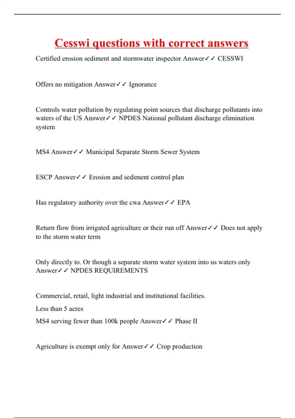 cesswi questions with correct answers