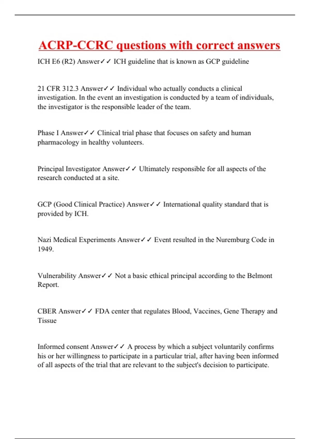 acrp ccrc questions with correct answers