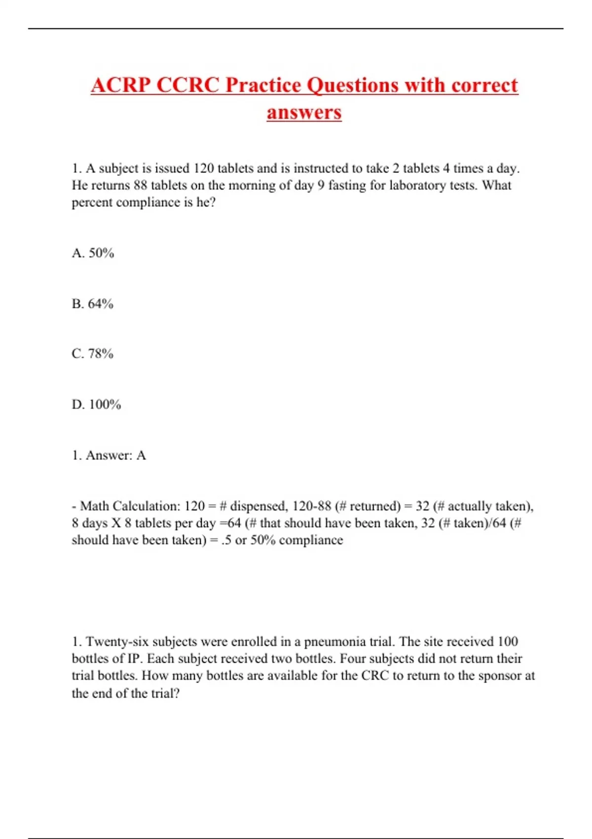 acrp ccrc practice questions with correct answers