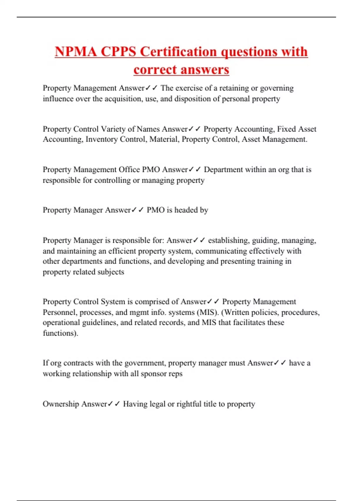 NPMA CPPS Certification questions with correct answers