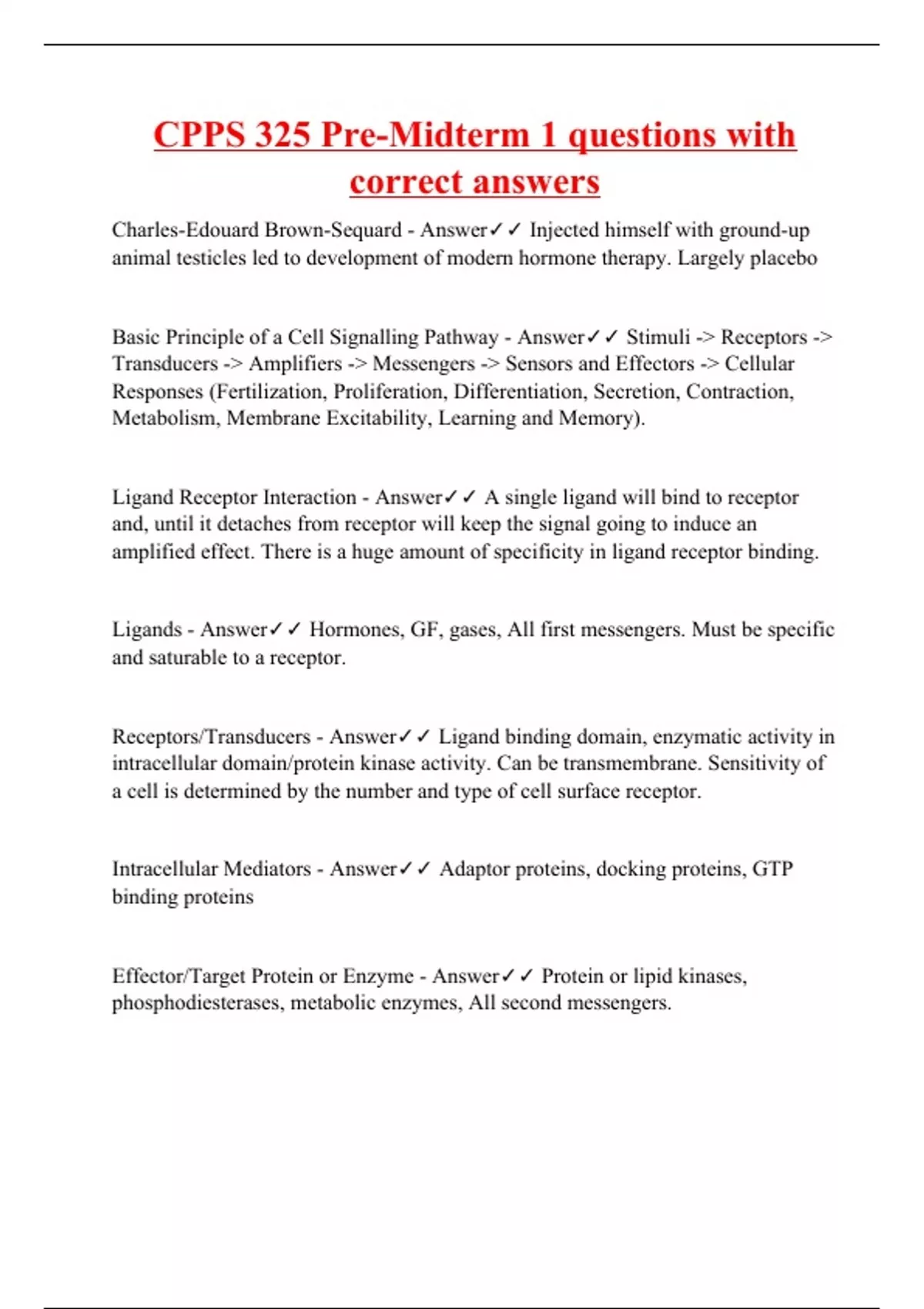 CPPS 325 Pre-Midterm 1 questions with correct answers