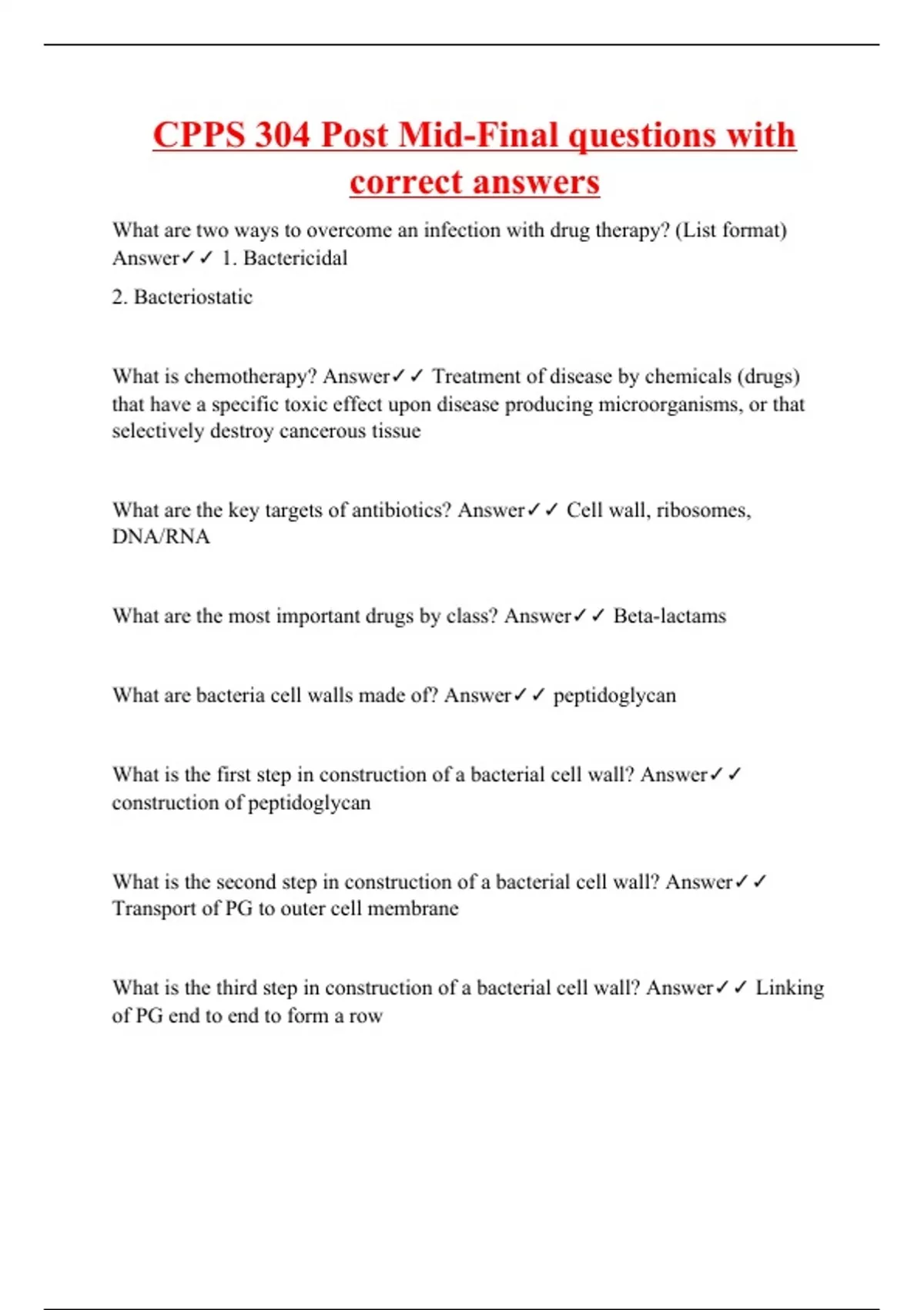 CPPS 304 Post Mid-Final questions with correct answers
